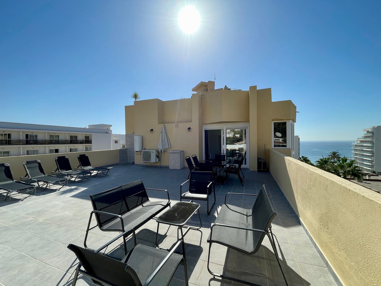 Salón-comedor muy amplio con cocina abierta y salida a gran terraza con vistas a la montaña, mar y jardín. Dispone de 3 dormitorios, de los cuales uno es doble con baño en suite y terraza privada, los otros dos con 2 camas individuales cada uno. Cocina amueblada y equipada (utensilios, menaje y pequeños electrodomésticos). Baño completo. Todo exterior y muy luminoso.