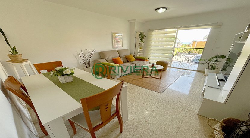 Consta de hall de entrada, salón-comedor con salida a terraza, vistas al mar, jardín y piscina, cocina, 2 dormitorios con armarios empotrados, 1 baño.