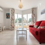 Consta de 3 dormitorios dobles con camas individuales y ventiladores de techo. Salón-comedor con salida a terraza de 10m², vistas a la piscina, jardín y mar. Todas los dormitorios exteriores al jardín. 2 baños completos. Cocina equipada, con utensilios, menaje y pequeños electrodomésticos.