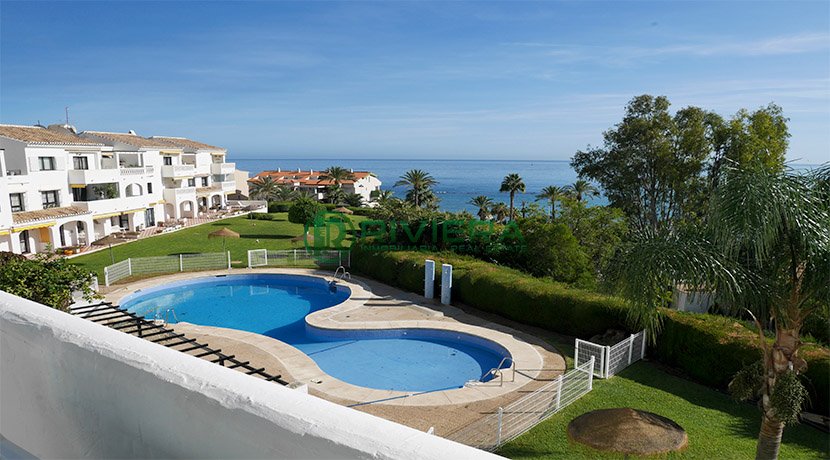 Dispone de 87 m2 construidos y distribuidos en hall de entrada, cocina office abierta, salón con terraza desde la cual puedes disfrutar del jardín, piscina y el mar, 2 dormitorios dobles con armarios y 1 baño.